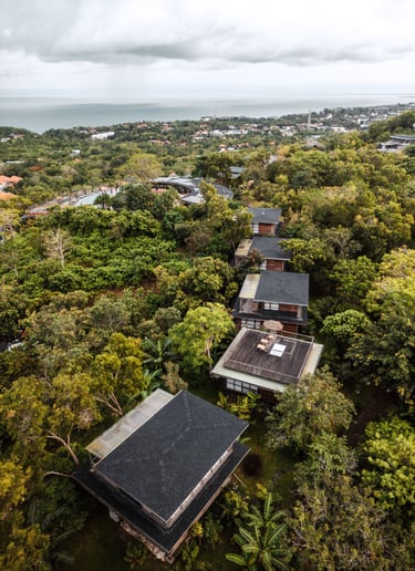 Showcasing the design and location of Grün Resort Uluwatu, Indonesia.